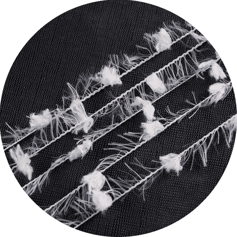 平織り: このシンプルな織り交ぜパターンはバランスのとれた構造を作り出し、耐久性を提供しながらフェザーヤーンの独特の風合いを発揮することができます。軽量のスカーフやショールなどの用途に適しています。